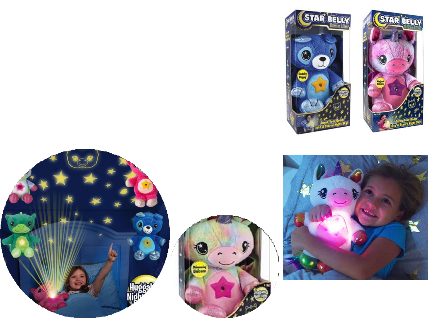 Peluche con proyector de estrellas y figuras variadas, disponible en varios colores dependiendo de stock